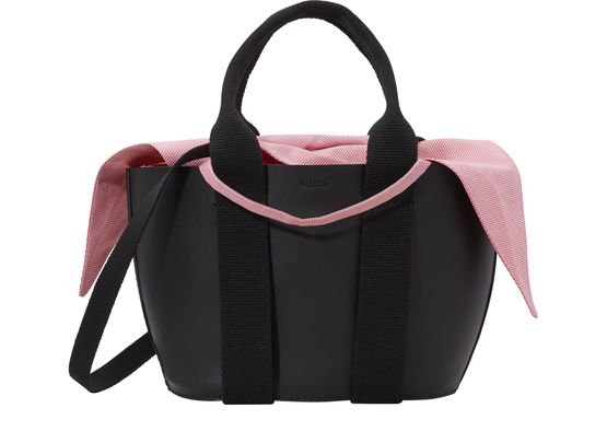 • Material : Bag : 100% calfskin leather (bos taurus) Handles : 67% polyviscose / 33% polypro Pouch : 100% coton