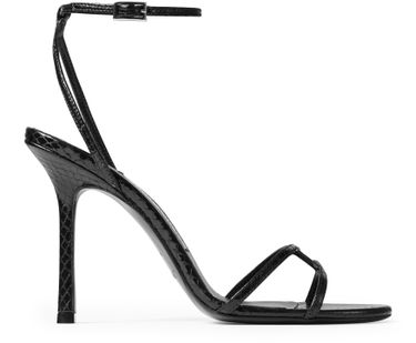 Unveil Jimmy Choo's high-heel sandals, featuring a sophisticated stiletto heel and a chic round toe for a modern look. The open toe design is complemented by a buckled ankle strap, ensuring stability and elegance. With its rear strap detail, these sandals are the epitome of style and grace.