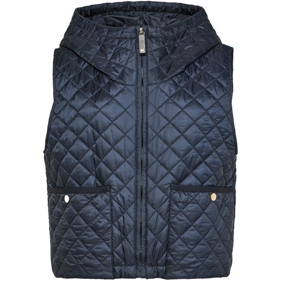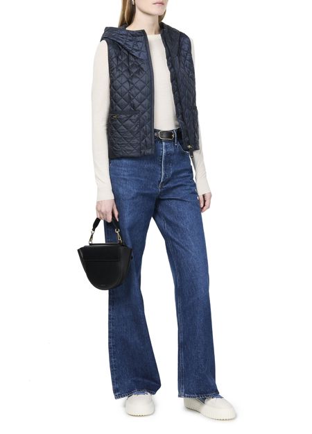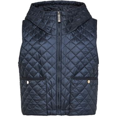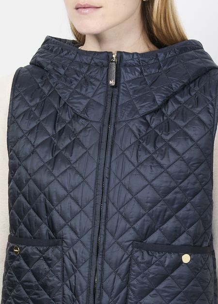 Max Mara's Lily sleeveless jacket - THE CUBE showcases a short, stylish silhouette with a convenient zipper closure. Its padded texture offers comfort, while the hood adds a practical touch. Featuring two front patch pockets, this casual jacket blends functionality with elegance, perfect for effortless layering in any season.