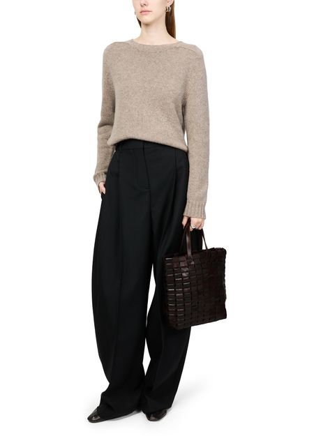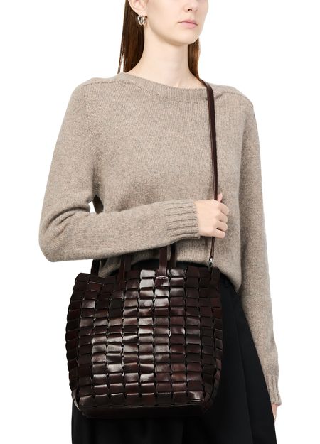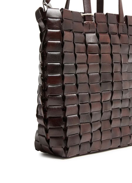 Reveal Dragon Diffusion's Link tote bag, crafted from exquisite suede. This tote features double handles and an adjustable thin strap, offering versatile carrying options. The visible topstitching and padded texture add a touch of sophistication, while the leather interior ensures durability and elegance.