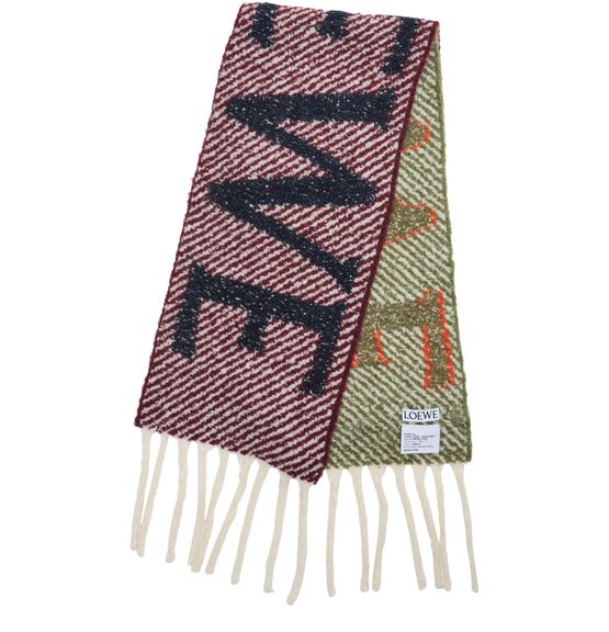 Unveil Loewe's scarf in alpaca and wool, featuring a striking striped print. The fringed edges add a touch of flair, while the logo print along the edge ensures a signature finish. Perfect for elevating any ensemble with its modern elegance.