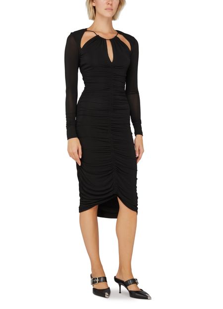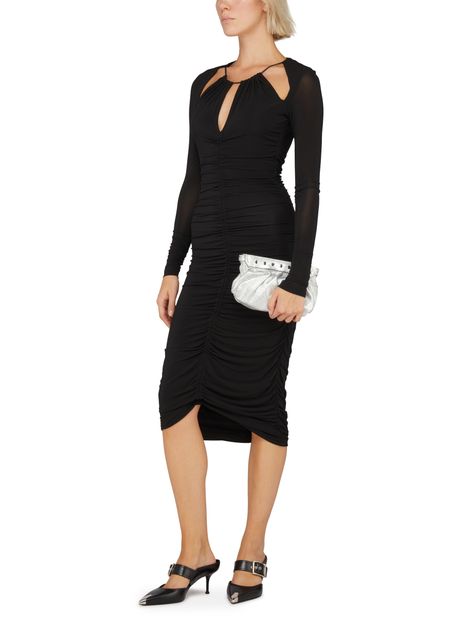 Isabel Marant's Logane dress is a striking midi dress with a tailored fit and long sleeves. It features graphic cut-outs and gather details, adding visual interest and unique texture to the design. This contemporary piece exudes modern elegance and is perfect for making a stylish statement at any event.
