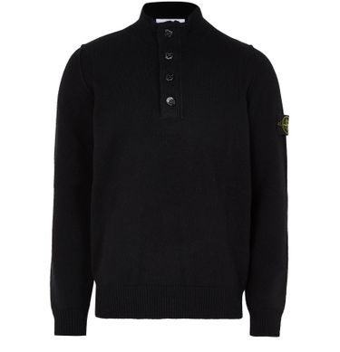 Reveal Stone Island's logo patch sweater, a masterpiece in modern style. This slim fit top features a mockneck and long cuffed sleeves, offering a sleek silhouette. The ribbed texture and button fastening add sophistication, while the embroidered logo on the side enhances its unique appeal.