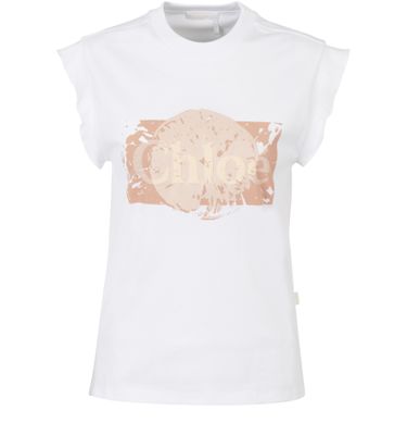 Designer Chloé brings a bold touch of design to this logo top. A cotton creation for women with a long cut and very short sleeves.