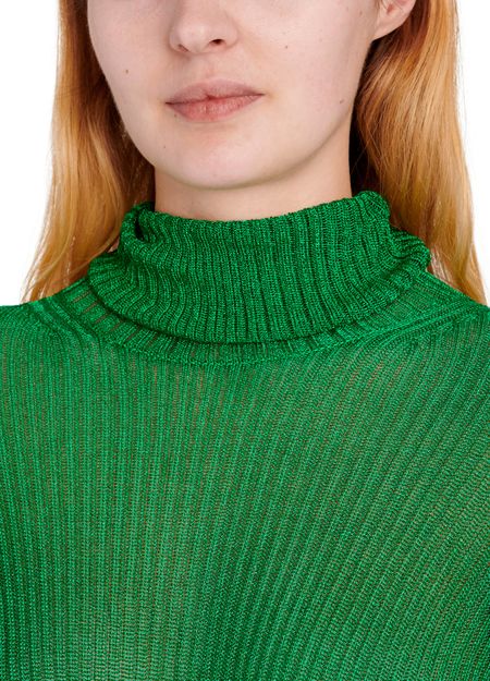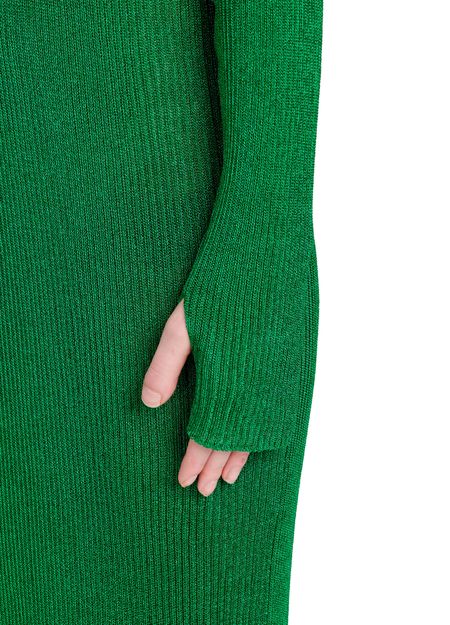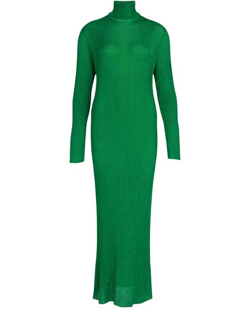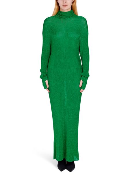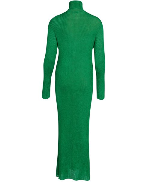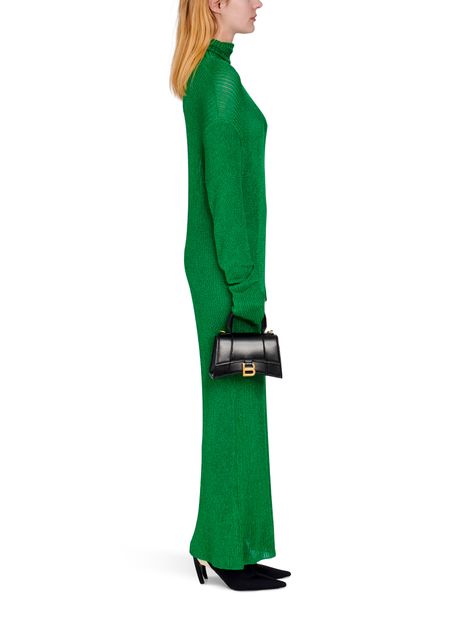 By turns a game of hide-and-seek and emphasizing femininity, this maxi dress from Balenciaga features a knitted fabric that sculpts the body like a second skin. Its roll neck and low-set long sleeves that cover the hand create a sensual, modern piece. Its longline silhouette is accentuated when worn with stiletto-heeled ankle boots.