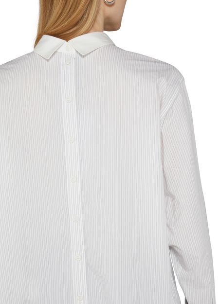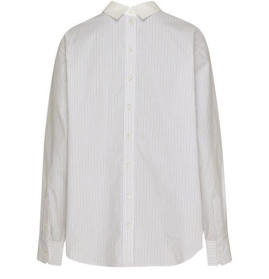 • Description : front buttoned closure, shorter at the front, visible stitching, shirt collar, regular length, all-over print, striped print, breast pocket, patch pockets, long-sleeved.
