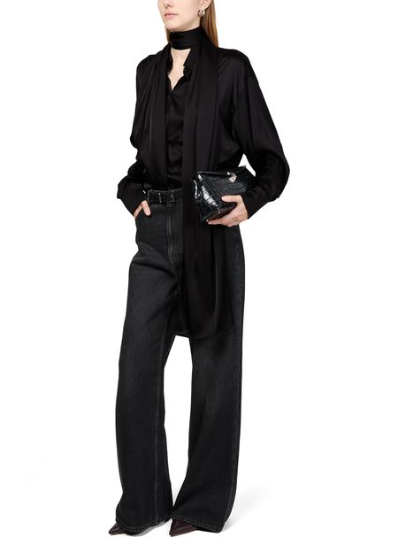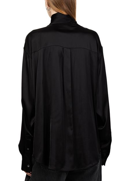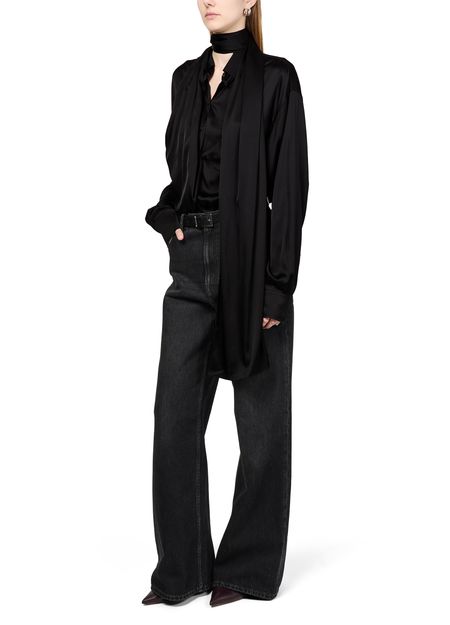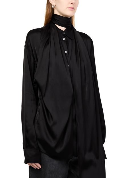 Reveal Acne Studios' long sleeve blouse, a masterpiece of modern design. Featuring a draped neckline and cuffed sleeves, this loose-fit shirt offers a contemporary silhouette. The button fastening adds a touch of elegance, making it a versatile piece for any wardrobe.