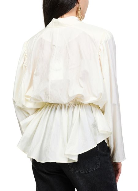 Reveal Chloe's long-sleeved shirt, featuring a refined V-neck and elegant button fastening. The gathered waist detail creates a flattering silhouette, while the soft fabric ensures comfort. Perfect for pairing with tailored pants or skirts, this top brings effortless sophistication to any modern wardrobe.