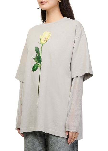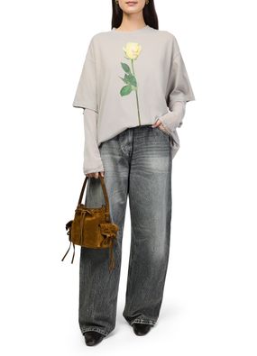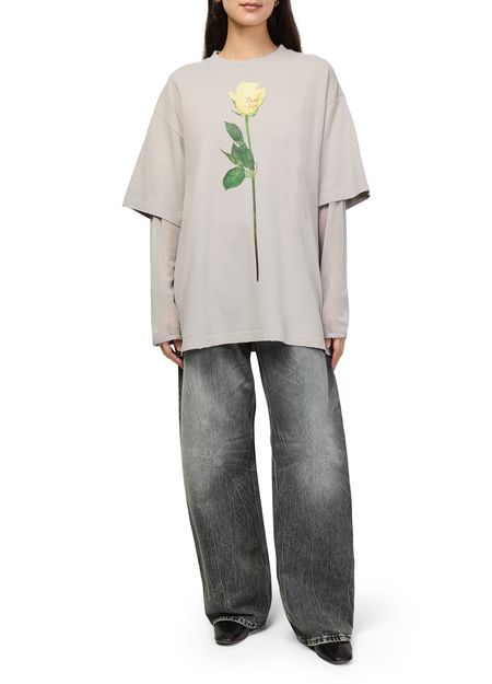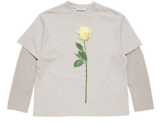 Reveal Acne Studios's long sleeved t-shirt, featuring a crew neck and a striking floral print. The short sleeves and printed logo at the back add a modern twist, making this top a versatile choice for elevating everyday looks or pairing with tailored pieces.