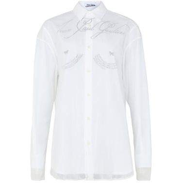 Description : printed, long-sleeved, front buttoned closure, long, cuffed sleeves, printed logo, appliquéd logo, front logo, visible stitching, loose fit.