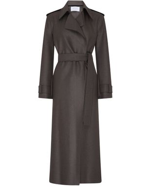 Harris Wharf's Long trench showcases a sophisticated long design with long sleeves, perfect for layering. Its double stitching adds durability, while the logo appliqué and logo label at the back elevate its style. This belted coat combines elegance and functionality, making it a must-have for any wardrobe.