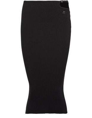 Courrèges's Loop rib knit skirt showcases an asymmetric cut that flatters the silhouette. With spaghetti straps and a fitted waist, this sleeveless mini dress is perfect for cocktail and evening events. Visible stitching adds a unique touch, while the asymmetric neckline elevates your style, ensuring you stand out in any crowd.