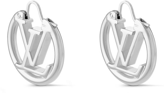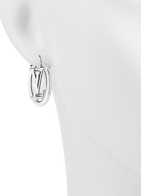 The Louise Mini Hoops in palladium colour brings versatility to any ensemble. The small hoops featuring the LV Circle are easy to wear and complement casual looks.