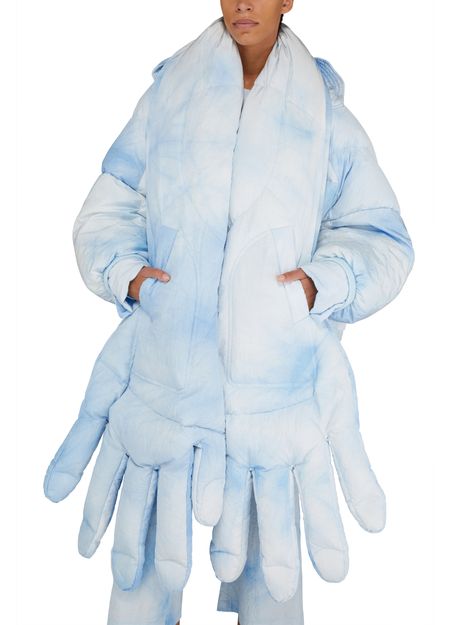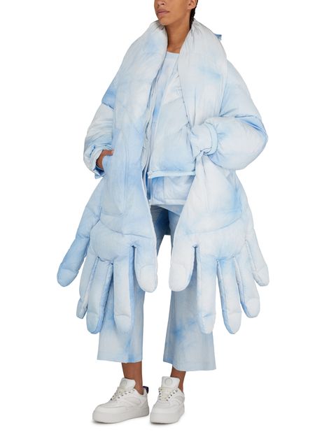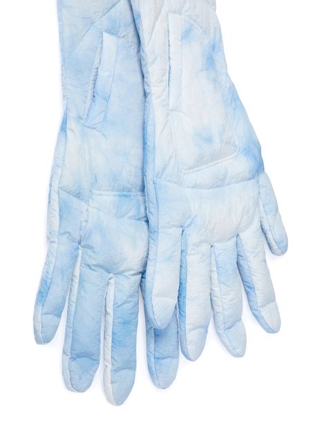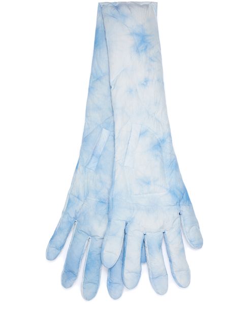 • Description : Long gloves, iridescent material, front pocket, visible stitching, pull-on design.