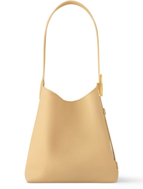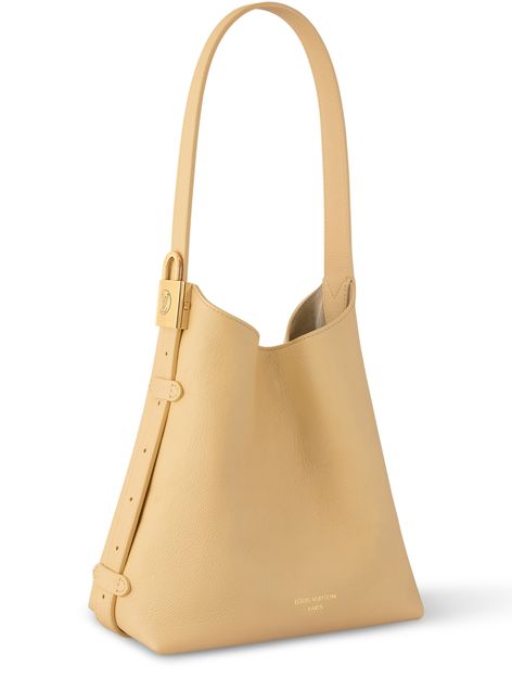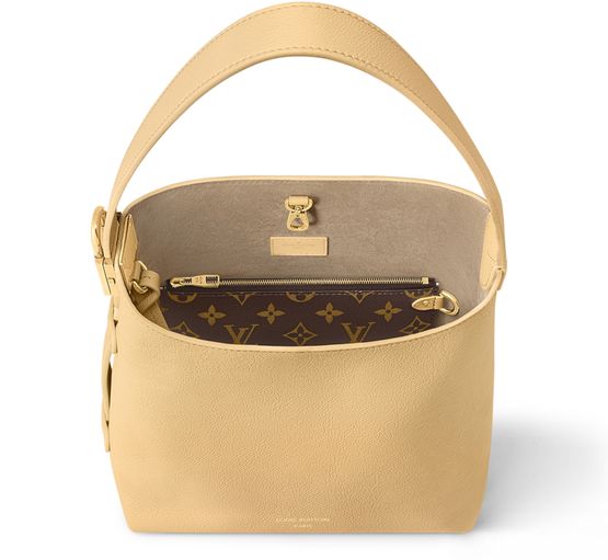 The supple Low Key Hobo PM bag is made from smooth calfskin with suede-calfskin lining. Its unique design includes a single strap that adjusts with a padlock buckle. The interior includes a removable zipped pouch in Monogram canvas to keep things organized. This bag can fit a compact wallet, large smartphone, keys, and other smaller belongings.