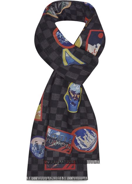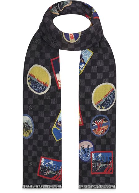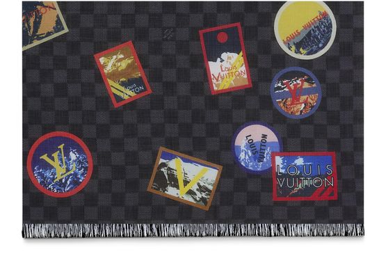 Characterized by the iconic Damier Graphite pattern, the LV Alpes Damier stole reflects the experimental and pioneering craftsmanship of Louis Vuitton. Refined cashmere and soft silk are delicately woven together for a luxurious feel, while colorful accents and hallmark mountain-themed patches add a playful twist. Fringed edges enhance the vintage finish of this piece.