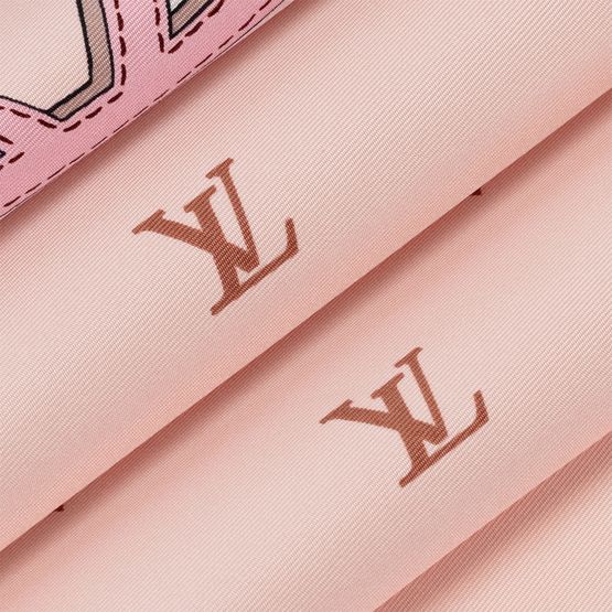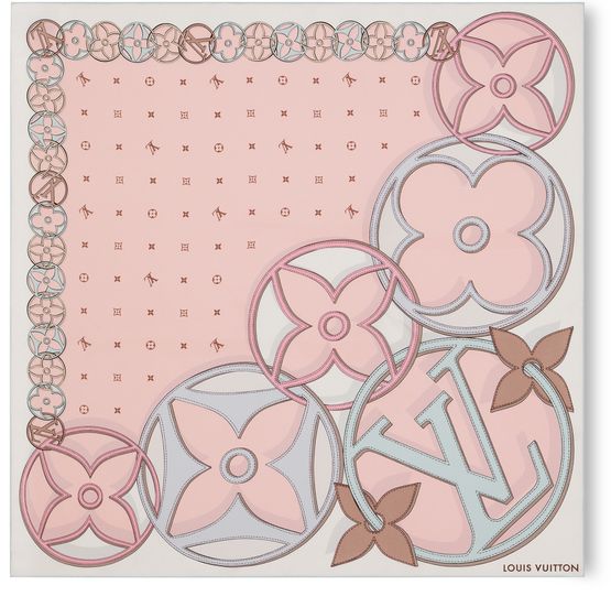 The LV Duality square spotlights two of the House’s best-known icons in a creative and colorful design. An LV Circle in one corner is surrounded by overlapping Monogram Flowers, giving way to a delicate Nano Monogram pattern. Styled in fine silk, it’s easy to tie, adding an original signature touch to any outfit.
