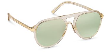 These LV Orbit sunglasses salute to the aviator style and are detailed with polished metal hardware. The lenses are tinted and embellished with LV Initials, while the transparent nose pads create a contemporary color contrast. Louis Vuitton signatures are engraved along the temples as further House hallmarks.