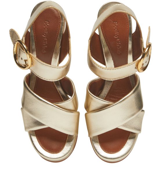 buckled ankle strap,
