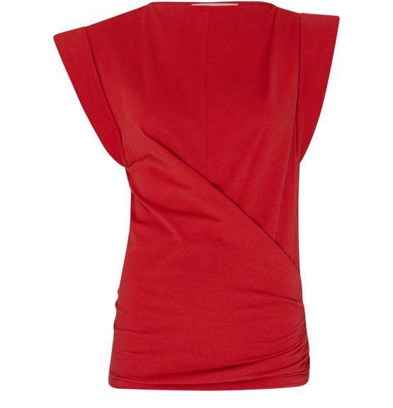 Isabel Marant's Maisan top showcases a regular length with short sleeves, elegantly draped detail enhancing its silhouette. The appliquéd logo adds a touch of sophistication, while visible stitching highlights the craftsmanship. Perfect for effortless styling, this blouse transitions seamlessly from day to night, embodying a chic, contemporary aesthetic.