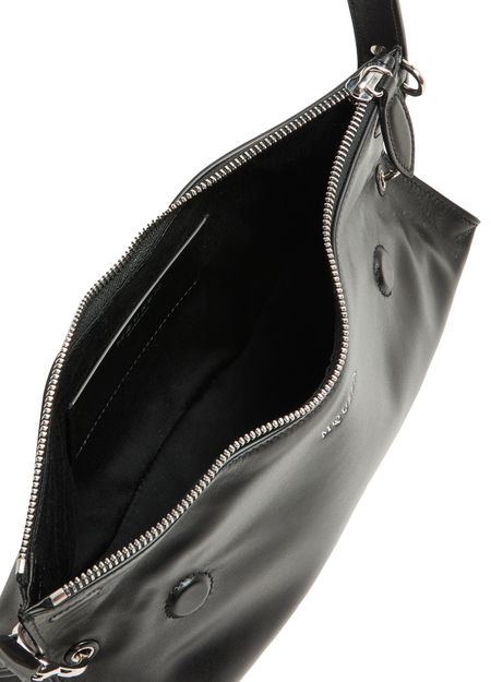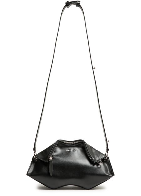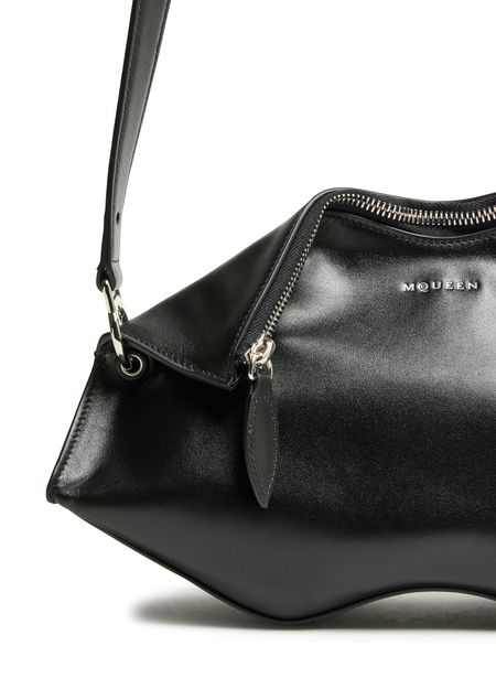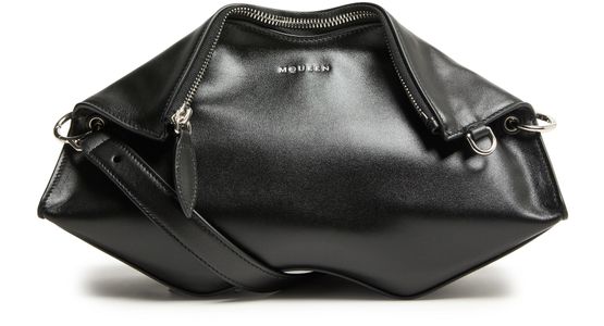 Reveal Alexander McQueen's Manta clutch bag, crafted from smooth leather with a detachable strap for versatile styling. The front logo in silver letters and visible topstitching highlight refined details, while a spacious interior compartment and secure zipper closure ensure both elegance and practicality.