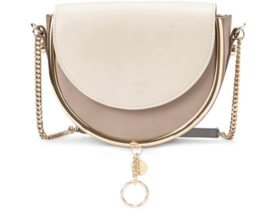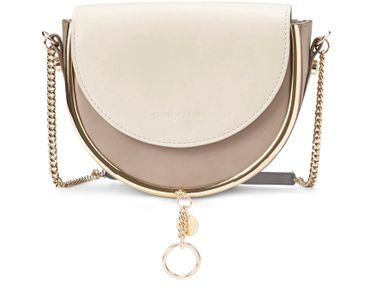 Stylishly romantic, the Mara evening bag reflects the image of its creator, See By Chloé. The crescent shape is emphasized by the gold tone edge with its cascade of charms.