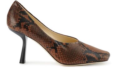 Introducing Jimmy Choo's Marcela 85 pumps, a stunning blend of elegance and modernity. Crafted from snakeskin print leather, these pumps feature a chic square toe and a sophisticated stiletto heel. The closed design ensures a sleek silhouette, perfect for elevating any ensemble with a touch of glamour.