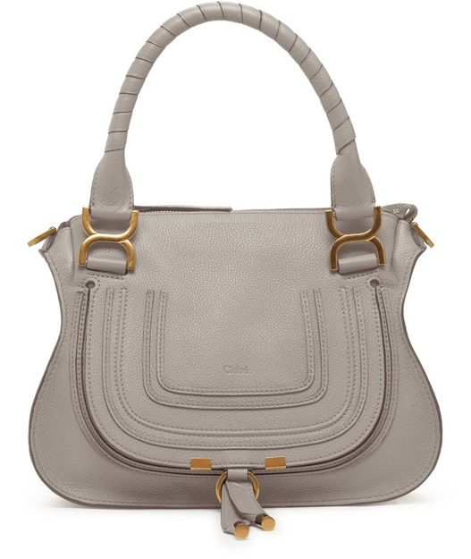 The Marcie handbag from Chloé features leather bound handles and a detachable strap for versatile carrying options. It has a zipper closure, visible stitching, and an embossed logo for a signature touch. The gold finish adds a touch of luxury. The bag can be hand carried, worn on the shoulder, or across the body for added convenience.