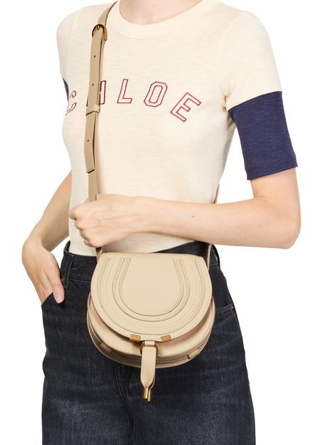The Marcie shoulder bag by Chloé features a luxurious gold finish and a timeless design. With a single handle and an adjustable strap, it can be worn crossbody for versatility. The thin strap and flap closure add a delicate touch to this elegant and practical accessory.