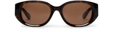 Chloé's Marcie sunglasses feature a logo on the temples and tinted lenses. With a round shape and gold finish, they exude a chic and sophisticated style. The thick temples add a touch of elegance to the design, making them a must-have accessory for any fashion-forward individual.