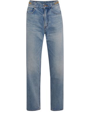 • Description : steel blue wash triomphe gourmette chains at the waist classic fi, straight leg, 5 pockets, rivets on the front pockets, celine jeans-engraved zip and button, made in japan reference : 2n814634r.07sv.