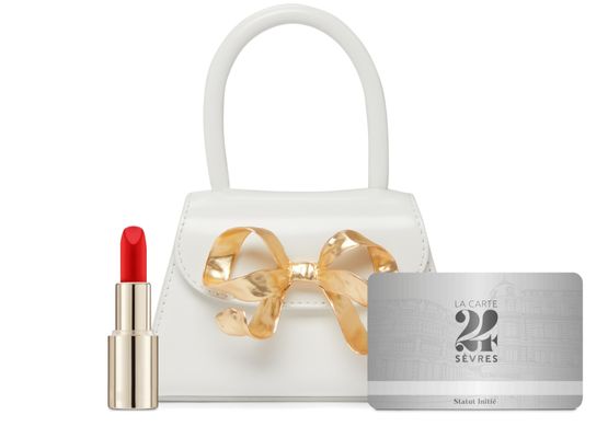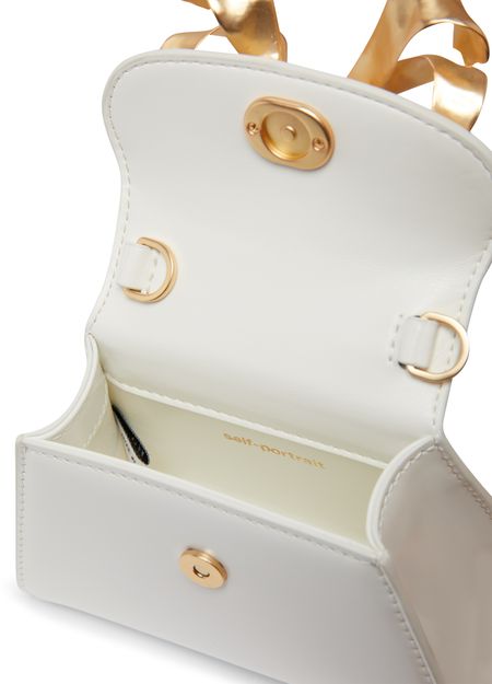 • Description : Mini bag, a handle, flap closure, gold finish, worn in the hand.