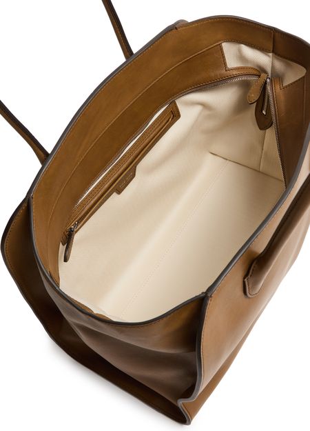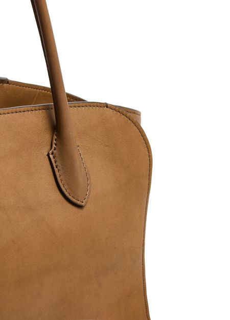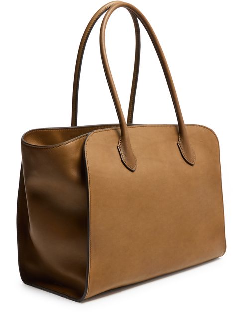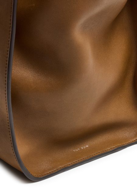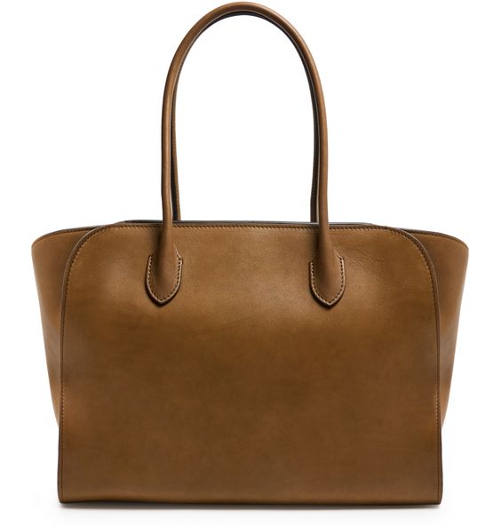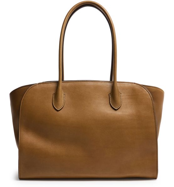 Reveal The Row's Marlo 14 bag, a refined tote designed for modern versatility. Double handles and visible stitching showcase expert craftsmanship, while a spacious interior and zippered pocket offer practical organization. The secure zipper closure ensures your essentials stay protected in this sophisticated everyday companion.