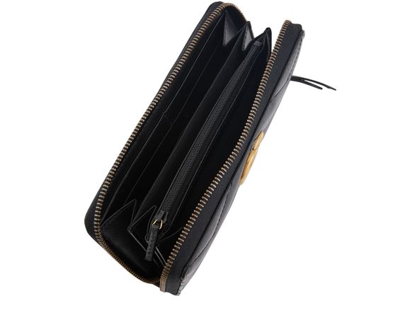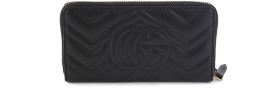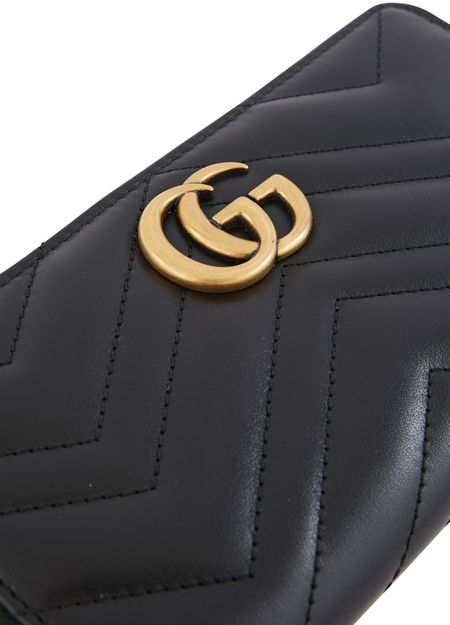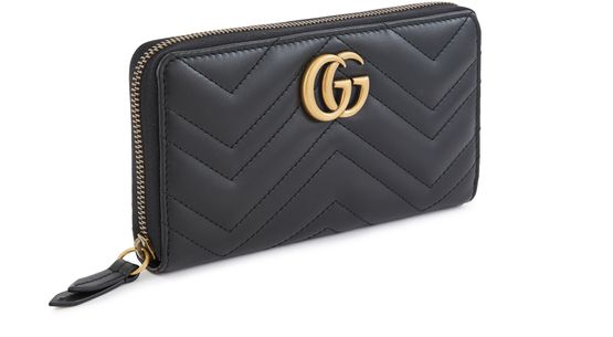 Made from herringbone quilted leather, the Gucci Marmont wallet has a zipped opening with multiple compartments that can be used to organise personal items.