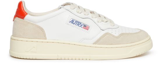 Description : Smooth leather and suede sneakers, lace-up shoes, round toe, graphic cut-outs, logo on the side, logo on the tongue, thick outsole, flat cotton laces.