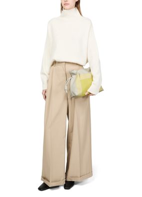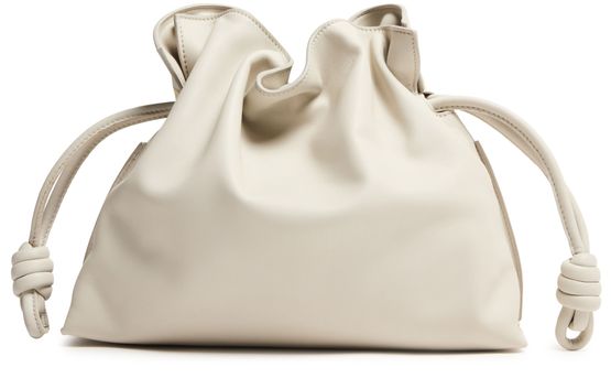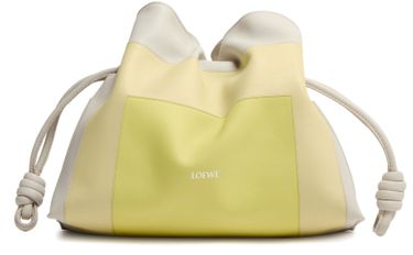 The Flamenco clutch is a soft and slouchy bag with a cinched closure and historical knot drawstrings. This medium version is crafted in nappa calfskin with intarsio squares inspired by Josef Albers's "Homage to the Square" series. This bag is part of the LOEWE x Albers collection.