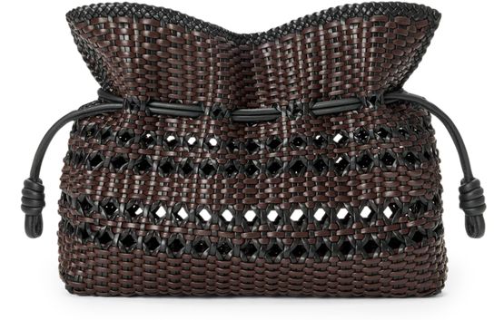 Reveal Loewe's medium Flamenco woven nappa leather clutch, crafted with an open weave for a refined texture. The drawstring closure adds a modern touch, while the signature silhouette ensures effortless sophistication for any occasion.