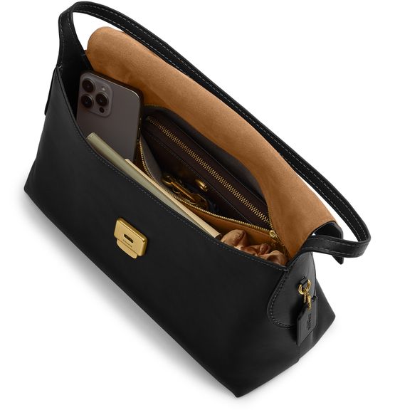 • Description : Shoulder bag, decorative label with embossed "coach" logo, embroidered "coach" logo, single handle, leather handle, front logo, smooth leather, gold clasp, flap closure, zippered interior pocket.