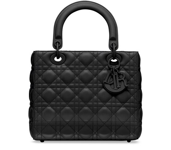 The Lady Dior handbag epitomizes Dior's vision of elegance and beauty. A sleek, feminine bag, it is timeless yet modern. The silver signature 'D. I. O. R.' charms embellish its silhouette. This medium style has a thin leather detachable shoulder strap.