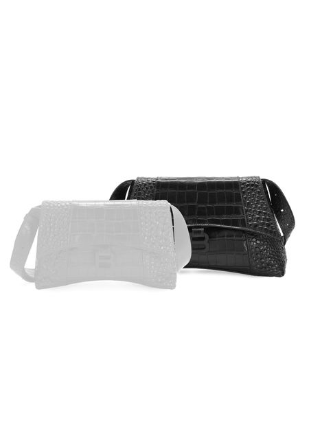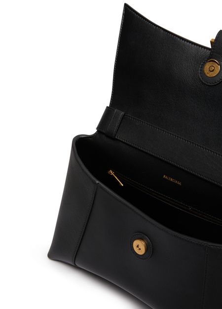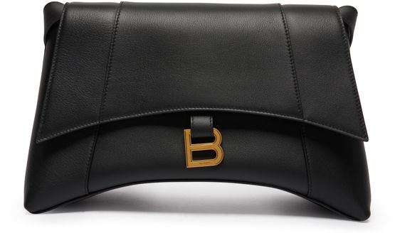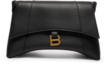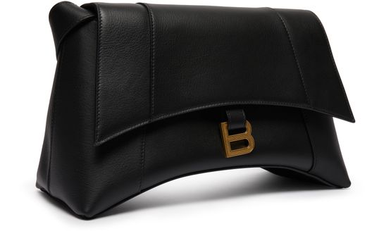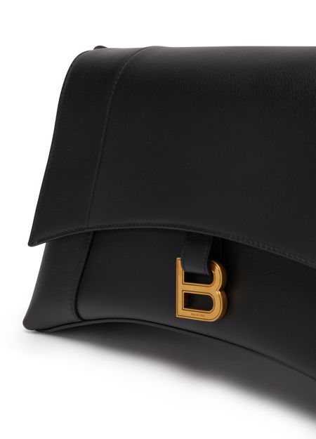 Balenciaga's Sac porté épaule Downtown moyen modèle features a curved bottom with an adjustable shoulder strap by 35.3 cm. It has an aged gold colour finish, magnetic clasp, BB logo, 1 back pocket, and 1 inner zip pocket. The bag is lined with Nappa leather for a luxurious touch.