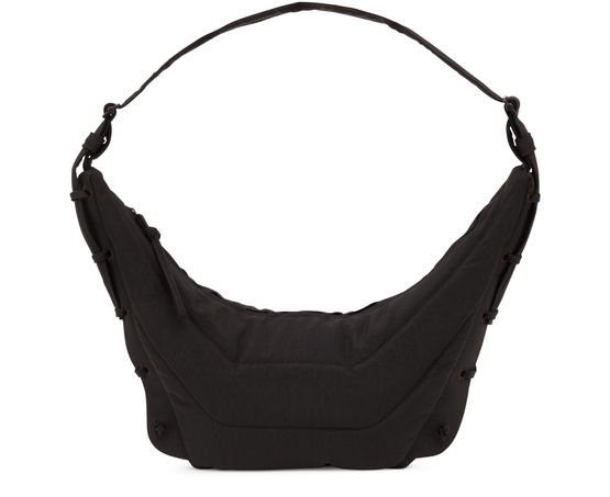 Lemaire's Medium soft game bag showcases visible topstitching and an appliquéd logo, embodying effortless style. With a zipper closure and a single handle, it offers versatility. Hand carried or worn on the shoulder, the adjustable strap enhances comfort, while the zippered interior pocket keeps essentials secure and organized.
