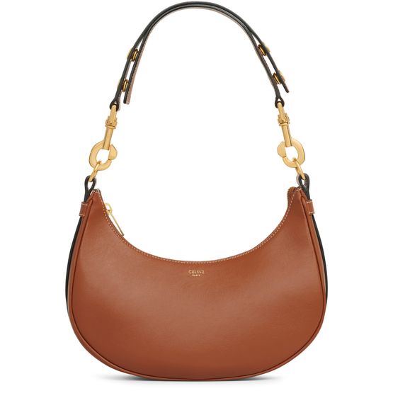 Celine's Medium strap Ava bag in smooth calfskin is a stunning blend of elegance and functionality. Adorned with gold metal hardware finishing, it features a zipped closure that secures one main compartment and a flat pocket for essentials. Its removable and adjustable strap allows for versatile shoulder or hand carry.