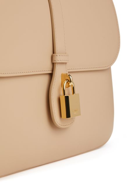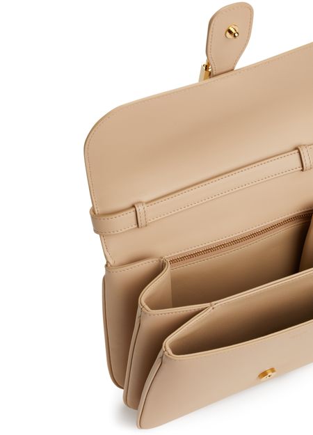 • Description : gold finishing, cross-body and shoulder carry, flap with decorative lock and snap button closure, 2 main compartements, adjustable and removable leather strap with 20 in (50 cm) drop, reference : 196583dk1.