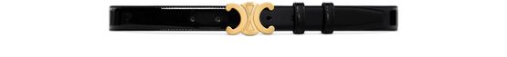 Celine's Medium Triomphe belt is a stunning accessory that effortlessly elevates any ensemble. Crafted from exquisite patent taurillon, it features a striking Triomphe buckle adorned with a collar stud, showcasing luxurious gold finishing. This chic belt sits perfectly at the middle-waist, making it a timeless addition to your wardrobe.