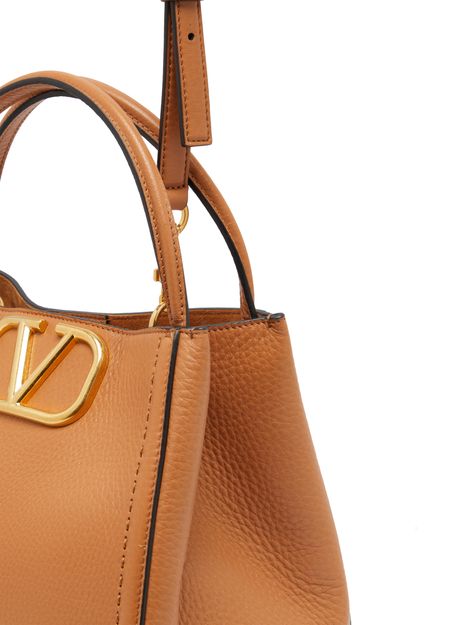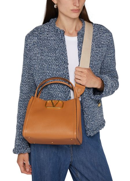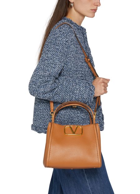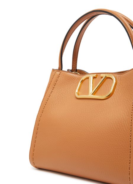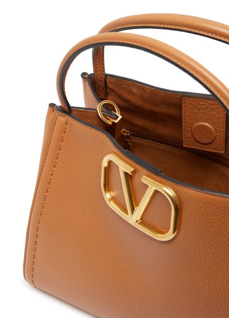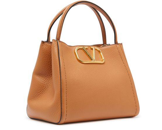 Valentino's Medium Valentino Garavani Alltime bag exudes elegance with its metallic logo on the front and logo in gold letters. Hand carried or worn on the shoulder, it features a thin strap, magnetic closure, and a single compartment with a zippered interior pocket. A detachable strap and carabiner add versatility.