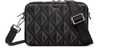 • Description : CD Diamond canvas, ruthenium-finish brass 'DIOR' signature on the front, interior embossed with 'DIOR' signature, ruthenium-finish brass two-way zip closure, removable and adjustable 'CHRISTIAN DIOR' jacquard shoulder strap, double zipped pocket, three card slots with an interior patch pocket.