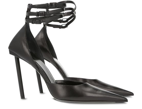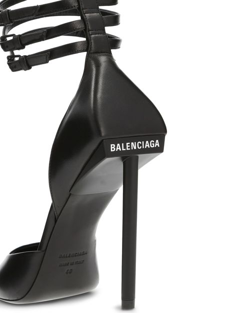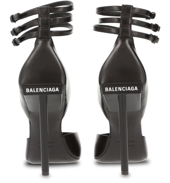 These elegant Met Slash pumps feature a slanting heel for a futuristic look, signed by Balenciaga. The ankle is held in place by three slender straps for added refinement.