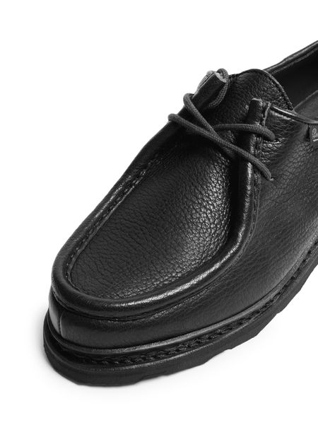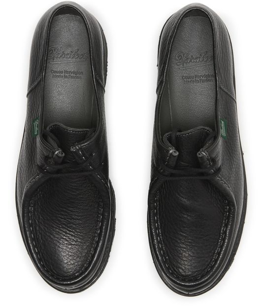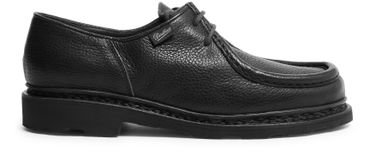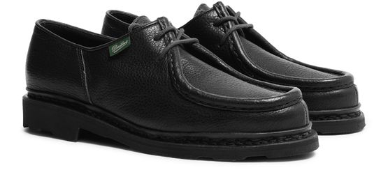 Reveal Paraboot's Michael derbies, expertly crafted from grained leather. These lace-up shoes boast a formal design with a logo on the side, engraved detailing, and a round toe. The block heel and thick outer sole provide comfort and durability, making them a refined choice for any occasion.