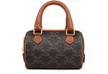 Unveil Celine's Mini Boston in Triomphe canvas—an exquisite blend of style and functionality. With gold finishing and versatile carry options including hand, shoulder, and cross-body, it promises elegance. The zipped closure, main compartment, leather handles, and adjustable strap ensure practicality for every occasion.