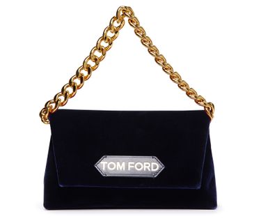 • Description : tom ford lozenge detail, iconic gourmette chain, removable chain strap, hand and elbow carry, 1 internal compartment, 2 inner credit card slots, chain drop: 11 cm.